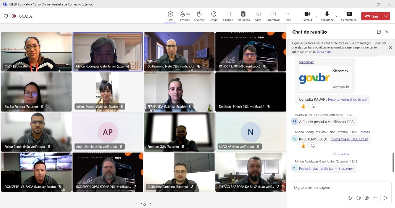 O Ciesp Botucatu promoveu, nos dias 16 e 17 de setembro, a capacitação on-line “Analista de Comércio Exterior – Módulos Exportação/Importação”, voltada a associados e parceiros contribuintes. O curso foi ministrado por Milton Gato, consultor com mais de 40 anos de experiência em empresas nacionais e multinacionais, e reuniu 28 participantes.
