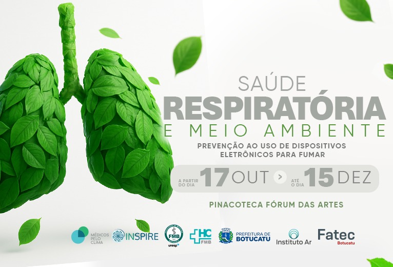Com o objetivo de conscientizar a população sobre os impactos do meio ambiente na saúde respiratória e os riscos do uso de dispositivos eletrônicos para fumar, o Programa Inspire, iniciativa dos Serviços de Pneumologia e Cirurgia Torácica do Hospital das Clínicas da Faculdade de Medicina de Botucatu – Unesp (HCFMB) e da Faculdade de Medicina de Botucatu (FMB), realiza em parceria com as Secretarias de Cultura, Educação e Esporte de Botucatu a exposição “Saúde Respiratória e Meio Ambiente”.